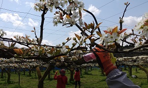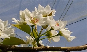 梨の花は収穫時期に関係なく、にっこり,豊水,かほり,幸水の順に咲きます。